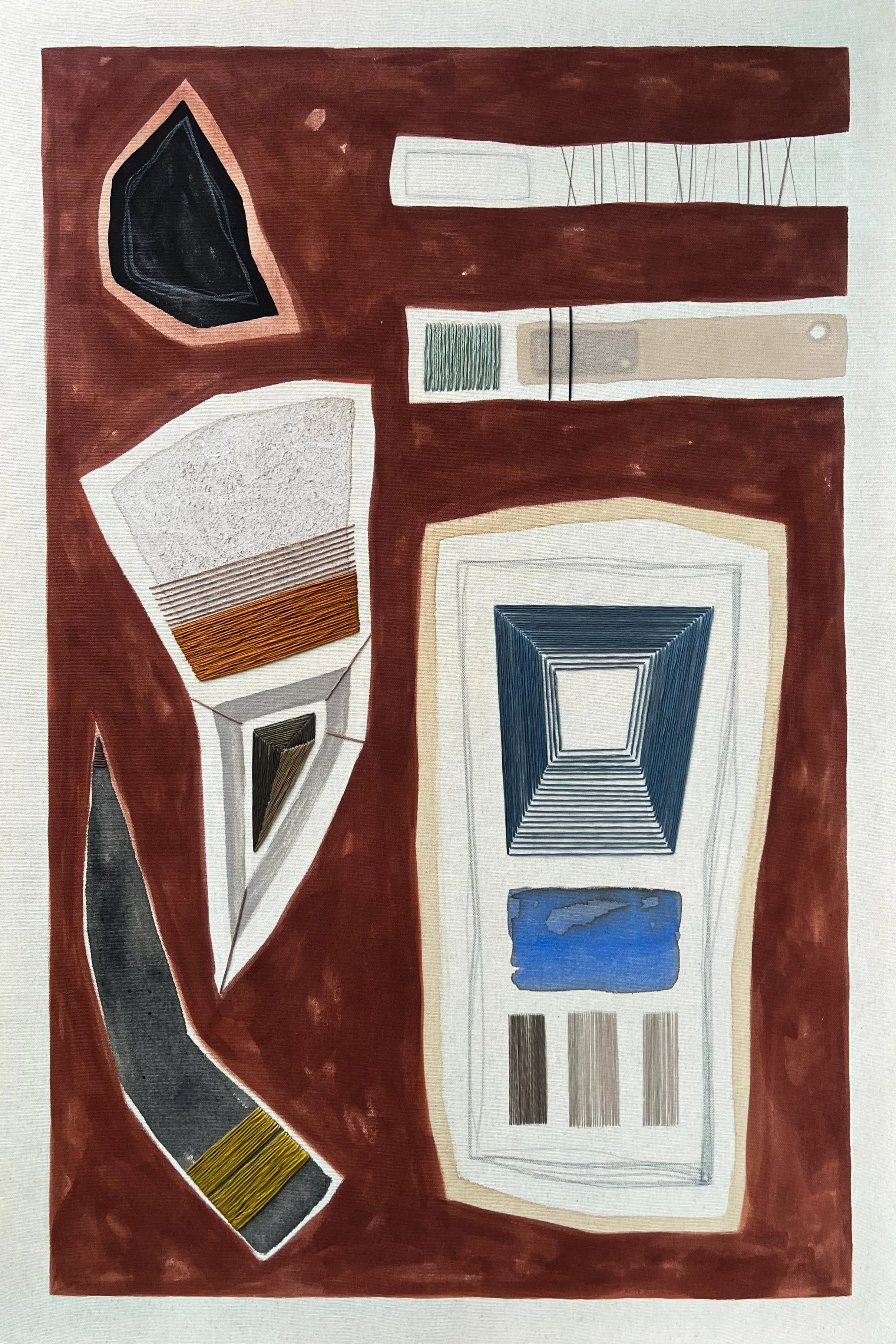 Maybe I Could Change It/ Mixed media with earthen pigments, soil, thread, and hair on canvas/ 48x36x2/ 2022